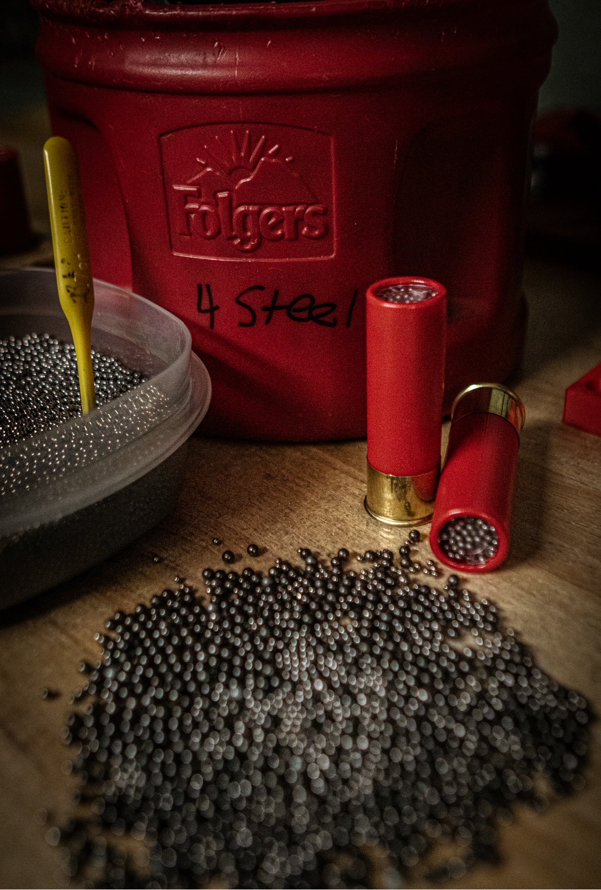 This 1.25oz blended load consists of 1oz of #4 steel shot mixed with 1/4oz of #9 TSS. 1400fps of duck hammers in a 250 round case.